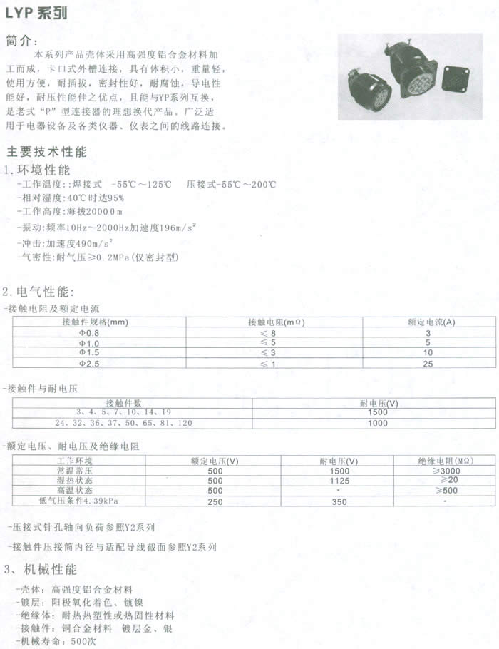 二、LYP系列圓形電連接器(航空插頭)主要技術(shù)性能